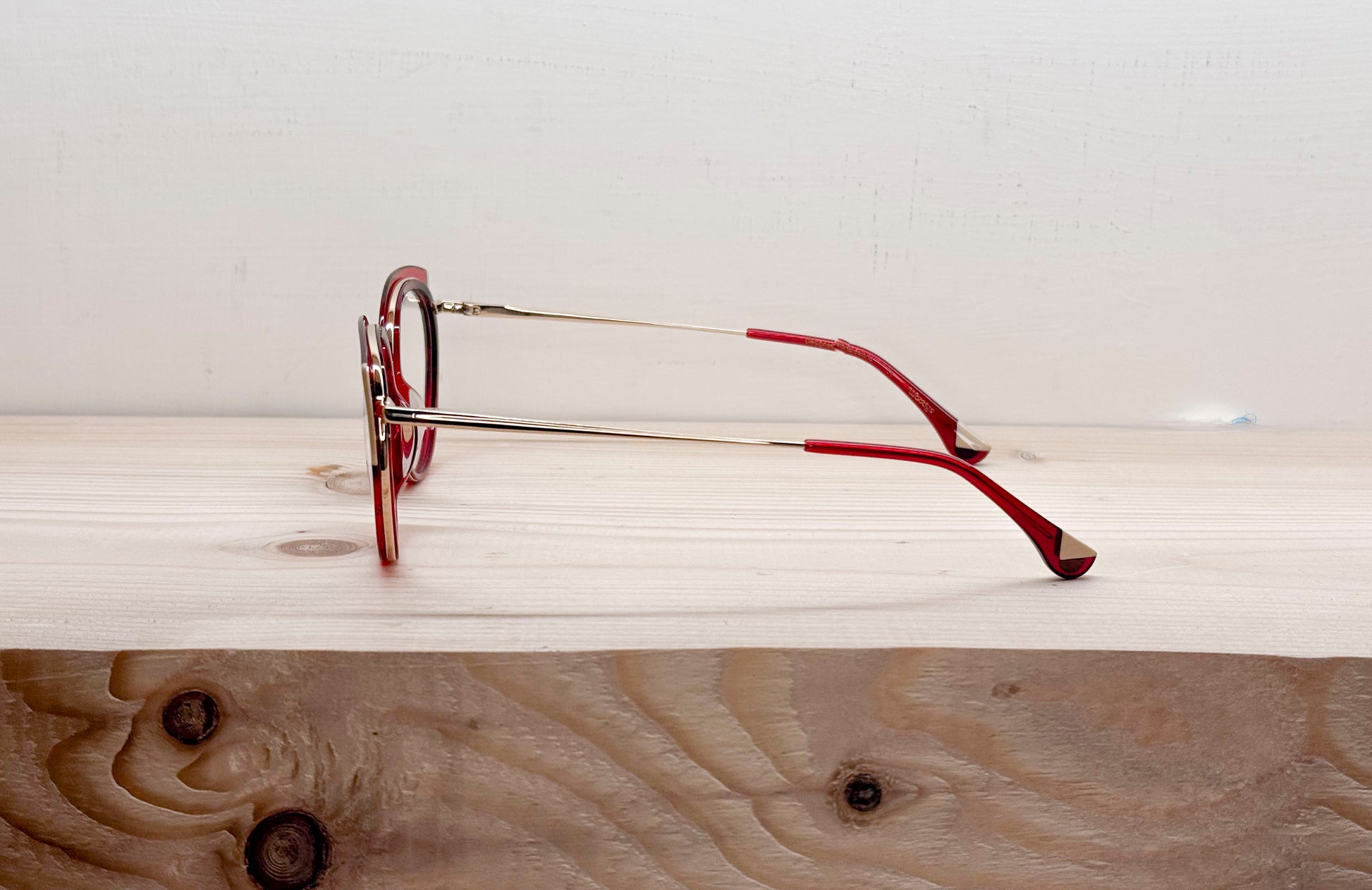 Debbie è un modello dalla forma leggermente cat-eye, realizzato in acciaio inossidabile nickel-free e arricchito da una doppia laminatura in acetato italiano. Le aste, sottili e raffinate, presentano terminali in acetato e l'emblematico inserto in legno di Woodys.