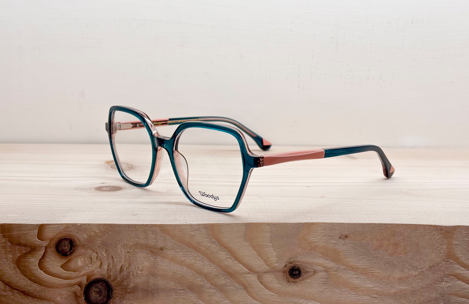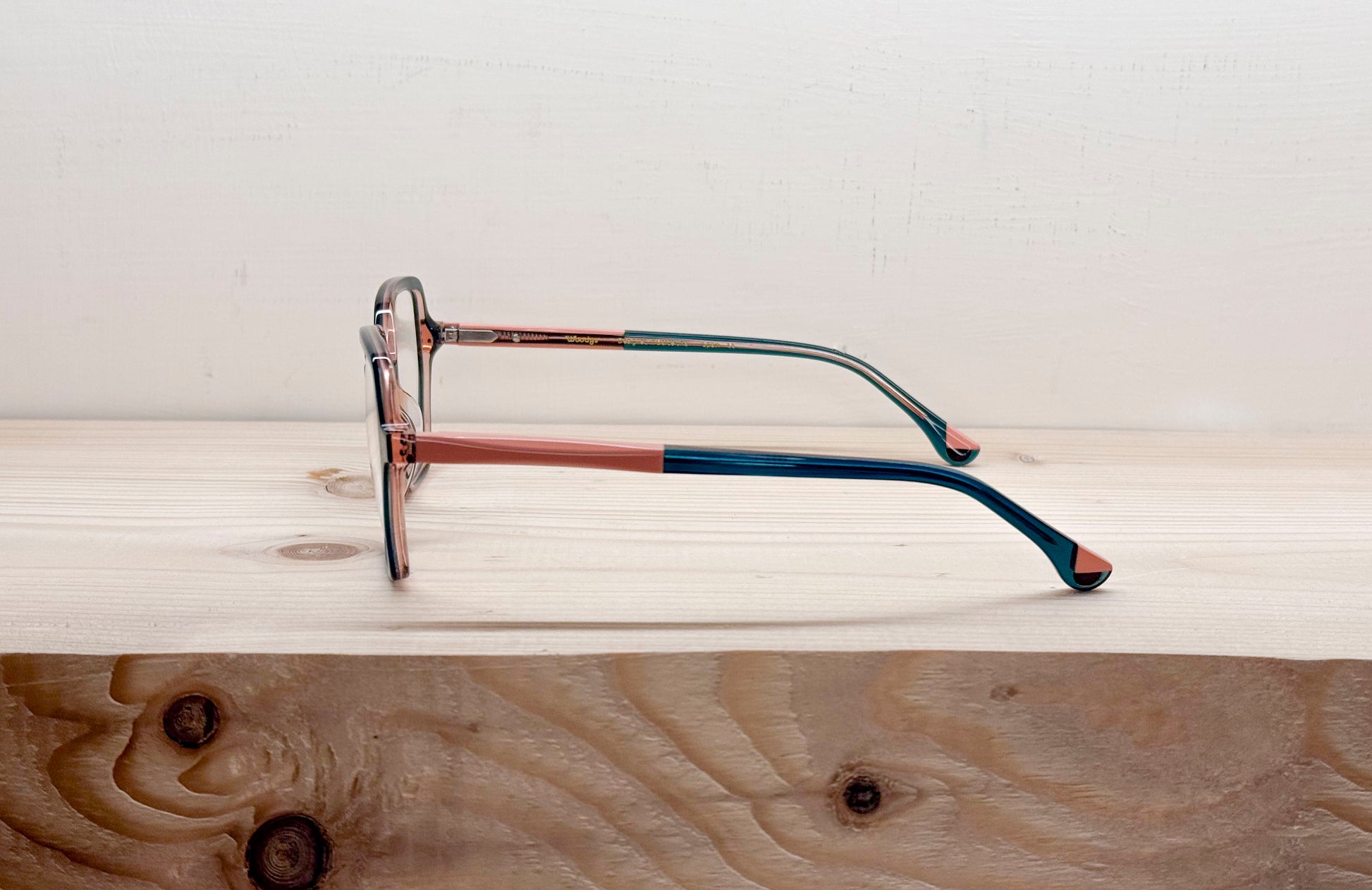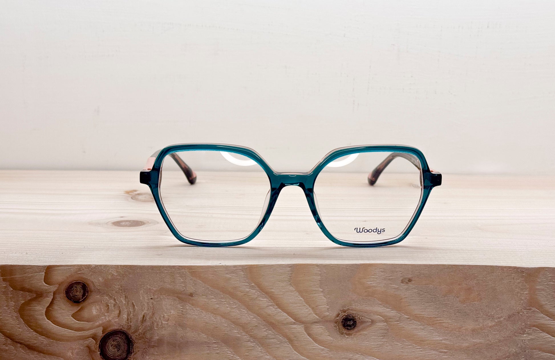 Il modello Maya è realizzato in acetato con un design esagonale. Le aste includono un dettaglio laminato, cerniere tedesche OBE Spike e inserti in legno nel terminale.